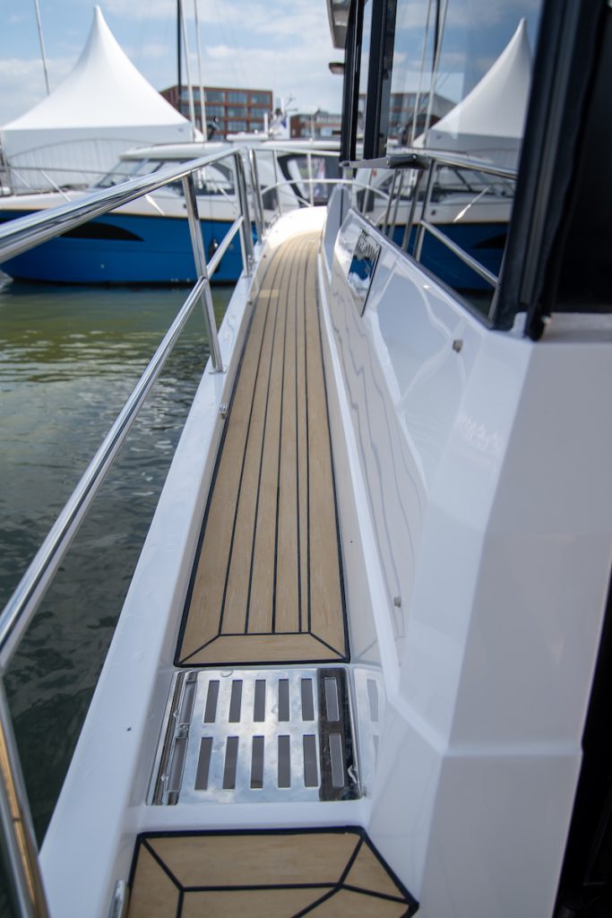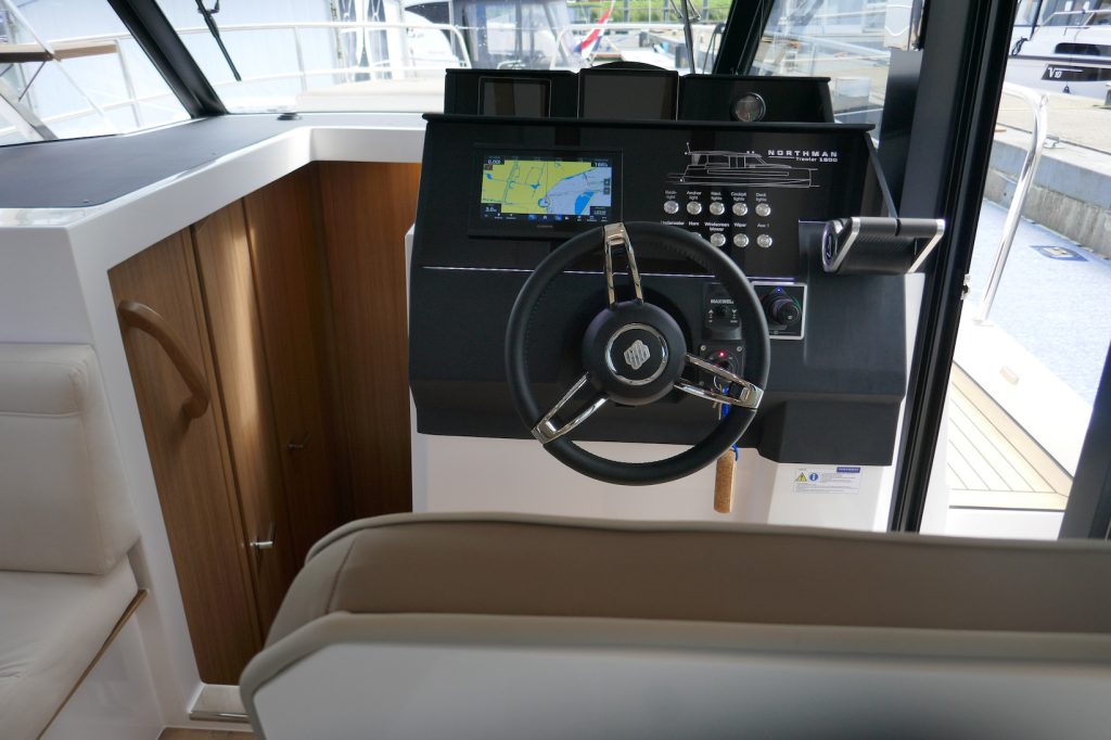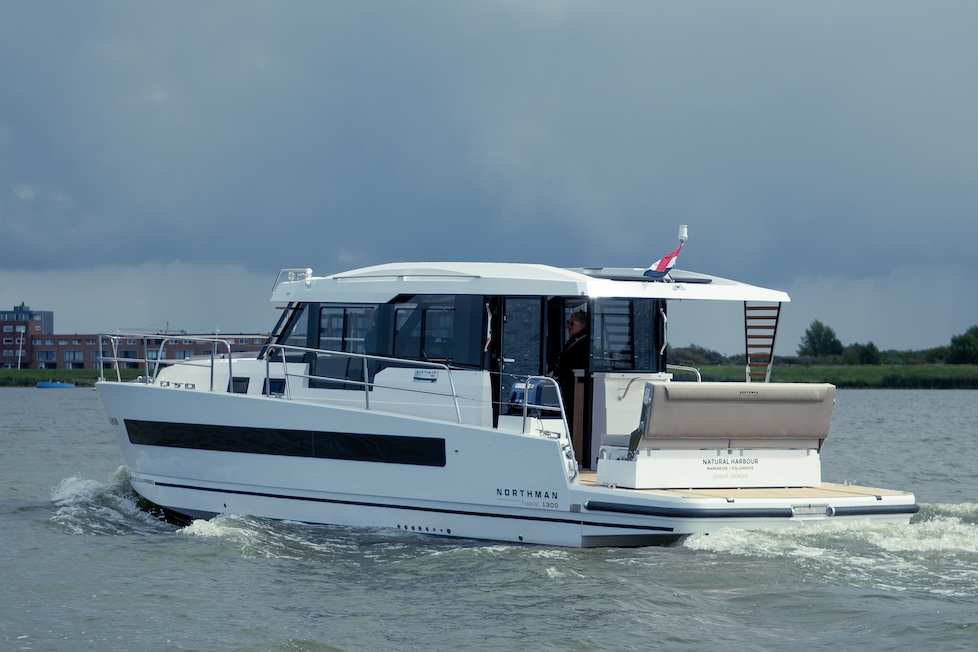 De Northman 1300 Trawler is een wereldpremière, die in verschillende versies verkrijgbaar is. Zo heb je de sedan en de flybridge versie en ook zijn er uitvoeringen met diesel aandrijving, een hybride versie of de geteste 1300 met 100 % elektrische aandrijving. De boot heeft een steile neus met een boegplateau voor het anker, een opvallende kim die een meter achter de boeg begint en een lang rompraam. De opbouw is symmetrisch geplaatst, zodat je aan beide zijden een breed gangboord hebt. Er is een opvallend groot zwemplateau met een spiegelbank die over een groot traject in de lengte van de boot verplaatsbaar is. De kajuit is aan de achterzijde begrensd met een schuifpui en een klapraam. Als je deze open zet, zorgt dat voor extreem veel gekoppelde binnen- en buitenruimte.