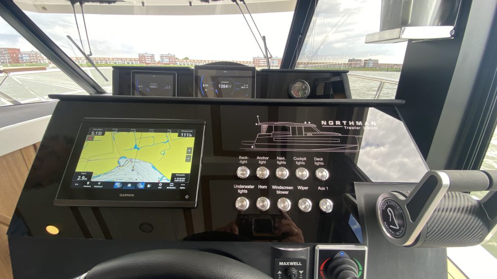 De geteste Northman 1300 Trawler beschikt over een zogenaamd ‘Full Solar Sunroof’, een dak bedekt met 2 x 18 kW zonnepanelen. Met 154 kWh aan accu’s aan boord hoef je nooit in te zitten over de actieradius en weet je zeker dat je aan boord kunt genieten van volledig elektrisch comfort zoals thuis. De mensen van Natural Yachts vertelden dat in het afgelopen seizoen slechts 40% van alle verbruikte energie uit de walstroom kwam, de test werd geleverd door de zonnepanelen. De aandrijving is met een 20kW elektromotoren van het Duitse Engiro, geïnstalleerd door Electric Ship Facilities. Dit is een zusterbedrijf van Natural Yachts dat zich heeft gespecialiseerd in ‘zero emisson oplossingen. Zo is er voor de geteste Northman behalve een dieselgenerator ook een 5 kW, 48 V ‘range extender’ met revolutionaire methanol brandstofcel techniek beschikbaar.