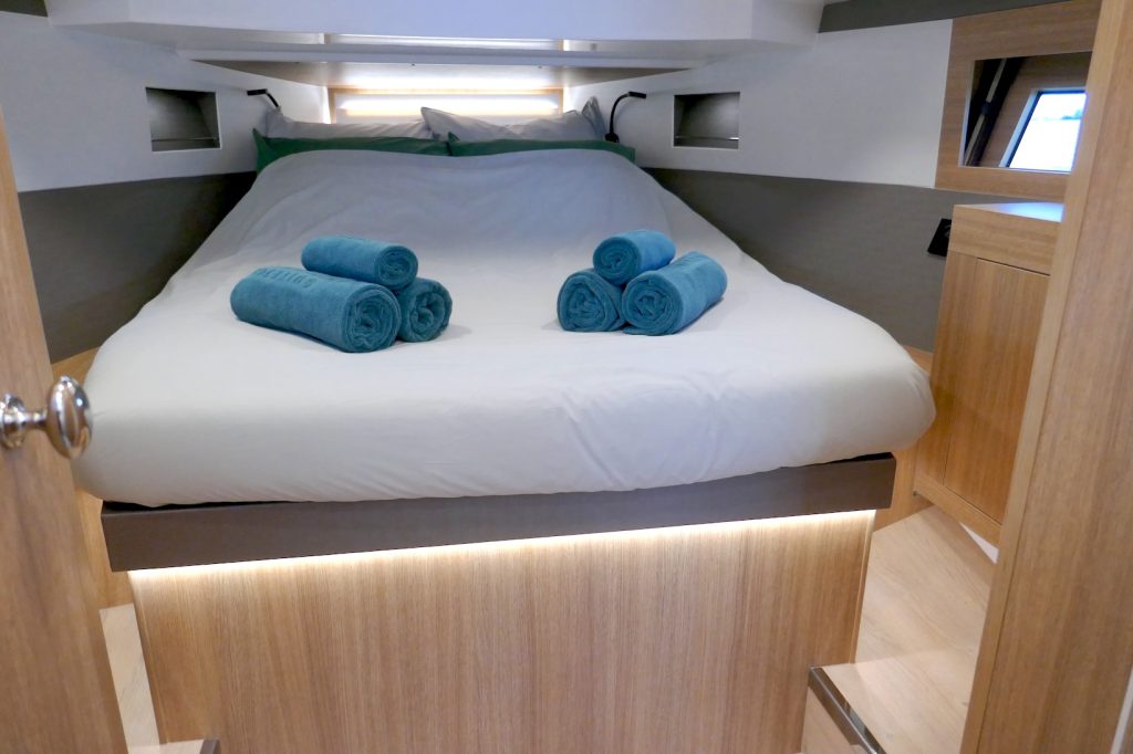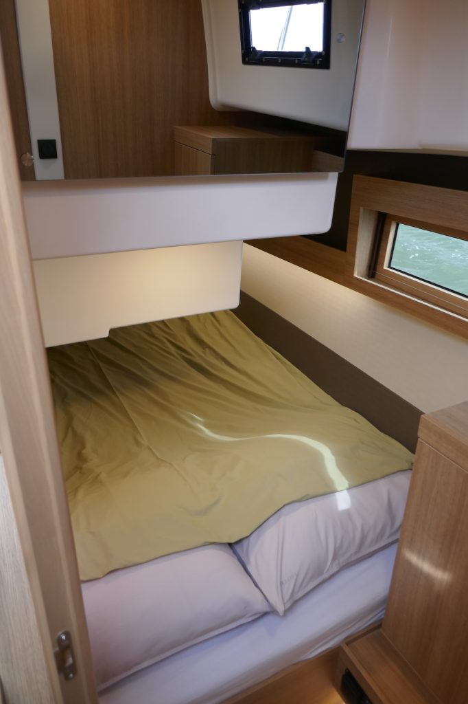 Het is een jacht dat ook speciaal voor de verhuur geschikt is. Aan boord heb je slaapplek voor 6 personen, twee compacte toiletten en een slim ontworpen leefruimte. Bij de indeling is goed gebruik gemaakt van de beschikbare ruimte en alles lijkt afgestemd op de essentiële wensen van consumenten. Een slaap-hut moet een goed bed en voldoende opbergruimte bevatten, lekker te ventileren zijn en wat ruimte bieden om je aan te kleden. Wat dat betreft is in de Northman aan al deze eisen voldaan. Mooi is het halletje dat met vier draaideuren en een vouwdeur praktische toegang biedt tot de drie slaapvertrekken en de twee compacte, maar complete natte ruimtes. Alles ziet er modern, verzorgd en netjes afgewerkt uit.