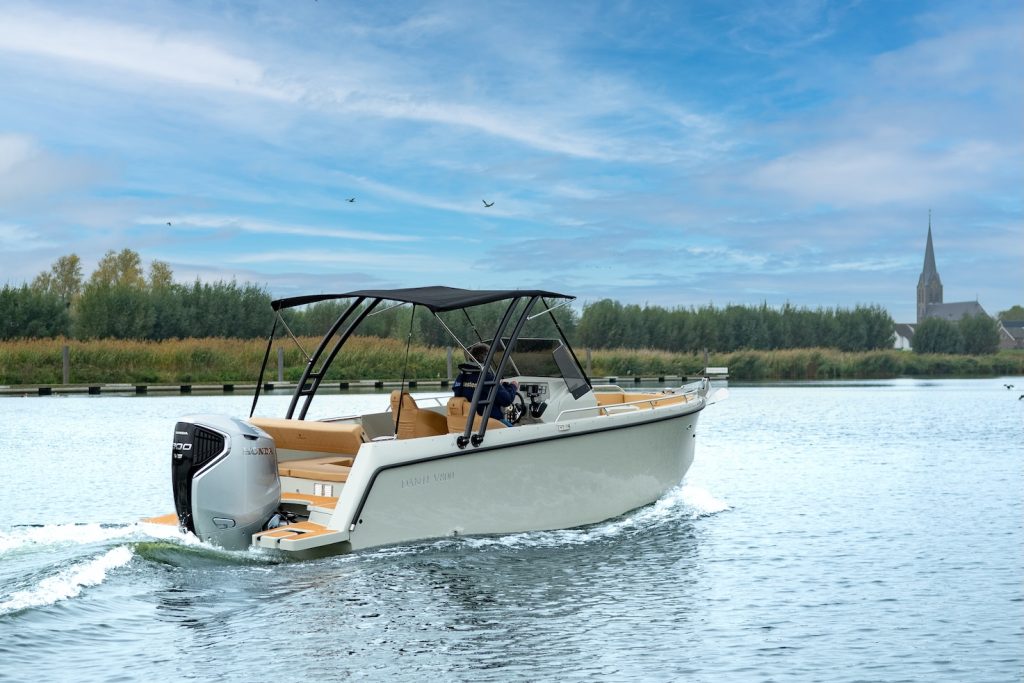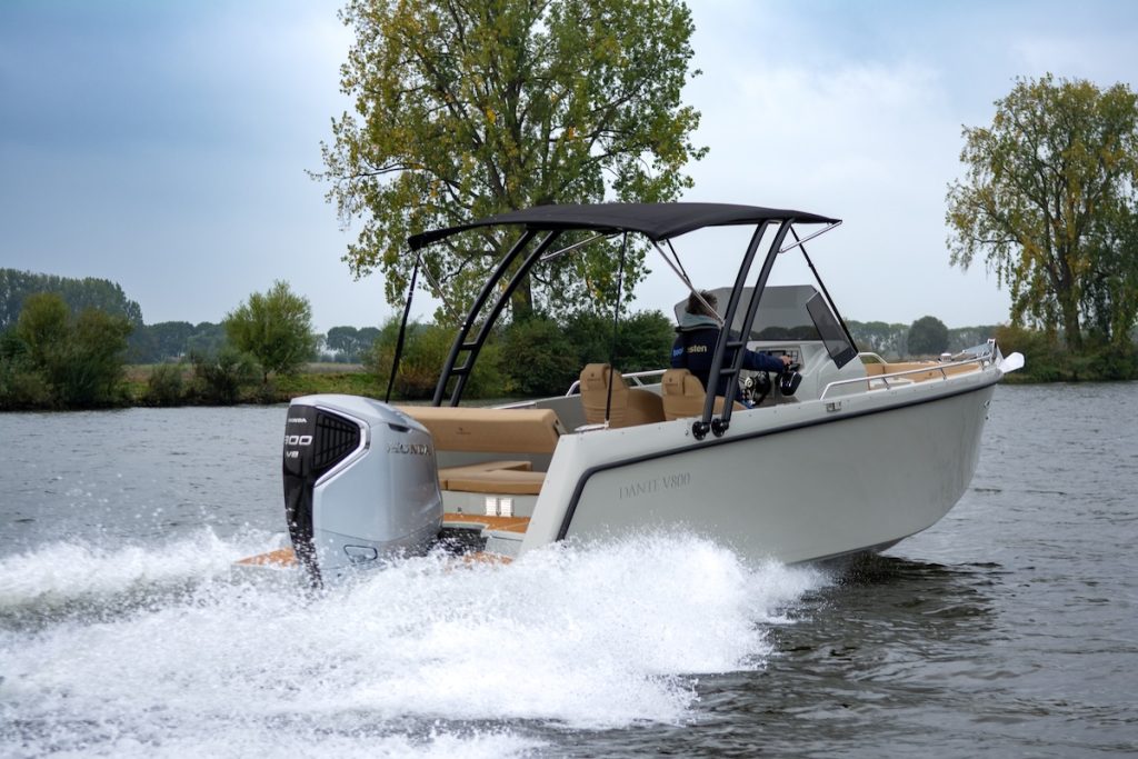 Danté is een nieuw merk van JG Boats op de Nederlandse markt. Het gaat om sloepen en snelle consoleboten met buitenboordmotoren. Wij testten de Danté V800 met de allereerste nieuwe Honda BF 300 V8 van ons land aan de spiegel. Spektakel verzekerd.