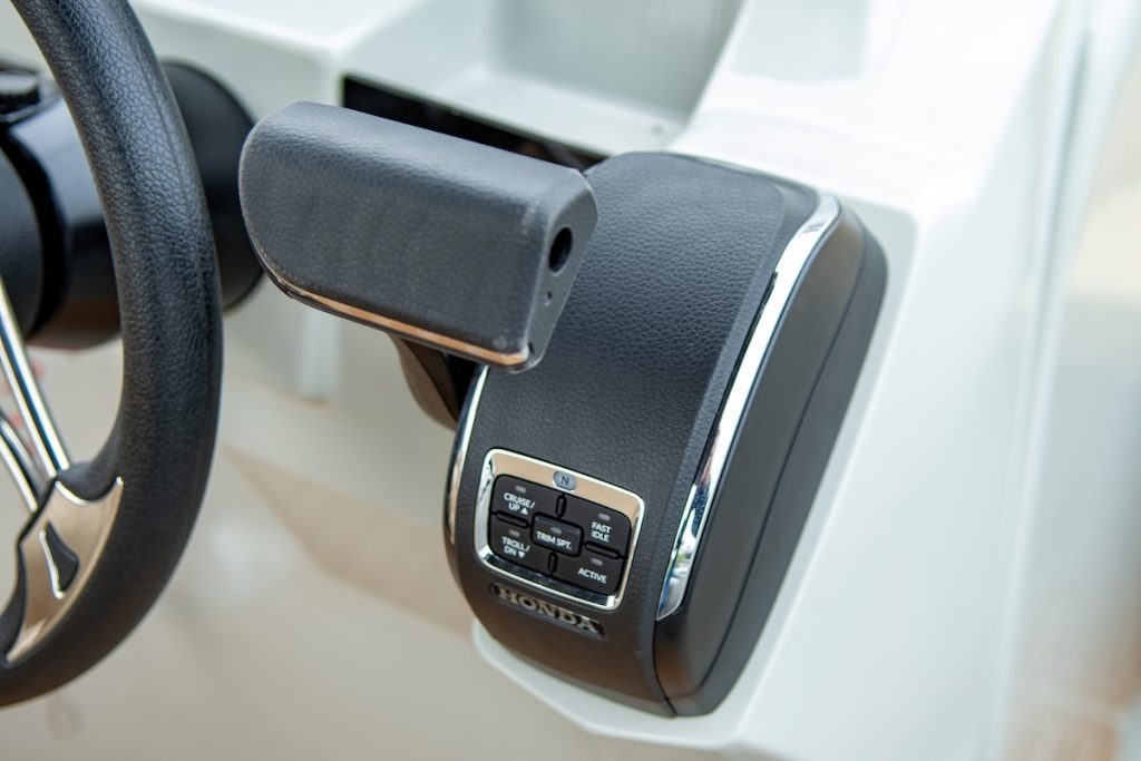 Bovendien is deze motor voor meer power weer helemaal volgestopt met de nieuwste snufjes. Deze technieken zijn door Honda vooral vanuit de Formule 1 ontwikkeld. Zoals V-Tec, variabele kleptiming en opening, dat de toch al krachtige motor in het bovenste toerenbereik nog meer power en acceleratiekracht geeft. Heel praktisch is de autotrim, die zorgt dat de boot optimaal getrimd door het water gaat, zonder dat de stuurman iets hoeft te doen. En dan is er de cruise-control, waarmee je gemakkelijk het toerental ietsje harder of zachter kunt zetten. Als je de boot wil stallen of afmeren, druk je op de PTT knop (Power Trim & Tilt) en dan glijdt de staart razendsnel omhoog in de stallingsmodus. Deze V8 zit ook boordevol brandstof-besparende technieken zoals EcoMo en BLAST. Zo haal je altijd maximale power uit een minimale hoeveelheid brandstof. Technische uitleg van deze technieken staat op het Honda Marine YouTube videokanaal.