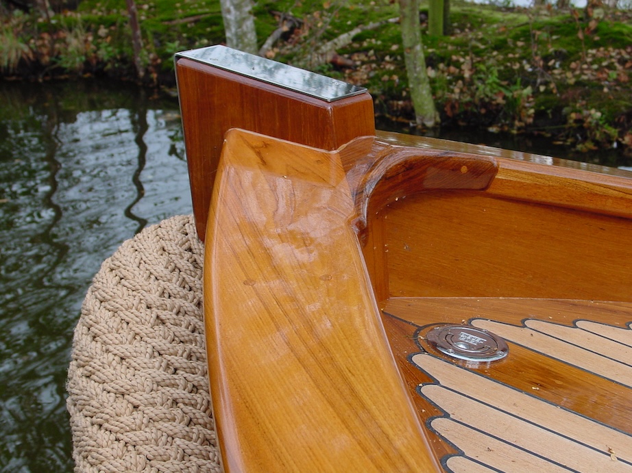 De afwerking van deze sloep mag als voorbeeld dienen voor andere sloepenbouwers. Elk detail is met liefde en zorg vormgegeven. De teakhouten delen zijn keurig afgerond en zeer strak in de hoogglanslak gezet. Nergens zijn sporen van onnauwkeurigheid te vinden en ook tijdens het manoeuvreren op hoge toerentallen en in snelle bochten worden geen bijgeluiden uit het binnenwerk waargenomen.