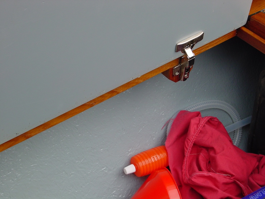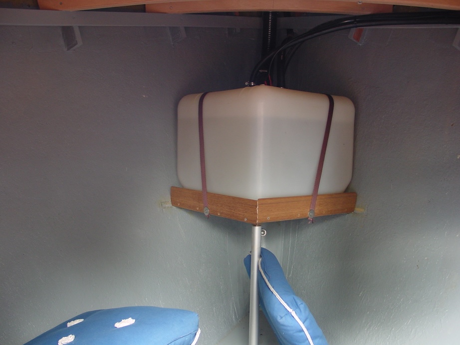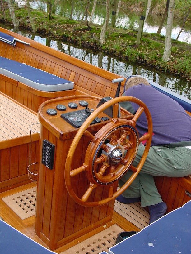 Boven op het roer is een rvs koker gemonteerd, waarin eenvoudig een noodhelmstok kan worden gestoken. Een hele simpele en veilige oplossing voor het geval er iets mis zou zijn met de hydraulische besturing. Ook de motorkamer brandblusser is simpel maar effectief ingebouwd. Onder een blokrooster vóór de motorkist is een vaste blusser gemonteerd waarvan de spuitopening in de motorkamer is geplaatst. In de motorkist zijn alle draden keurig opgebonden en is de isolatie keurig voorzien van een oliewerende laag.