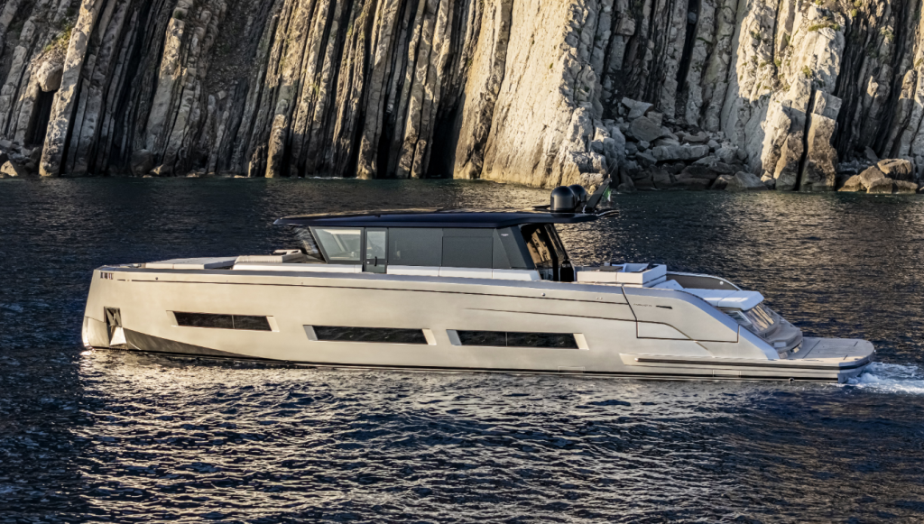 Het grootste jacht van de Pardo werf heeft veel fraaie design elementen en talloze gebruiksmogelijkheden, van duur-tochten tot partyen.